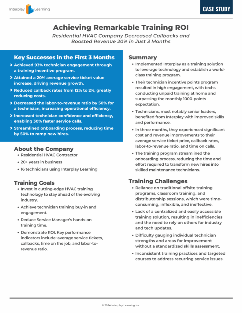 Ready to modernize HVAC Training and ROI? Download the Case Study or Talk to a Training Expert.